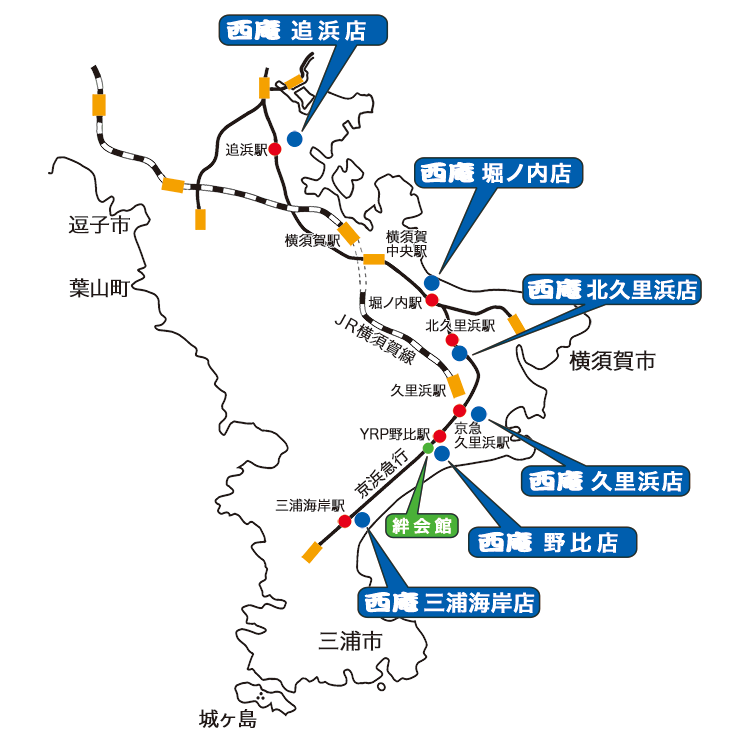 西庵ホールはすべて利便性の良い京浜急行線の駅近立地。